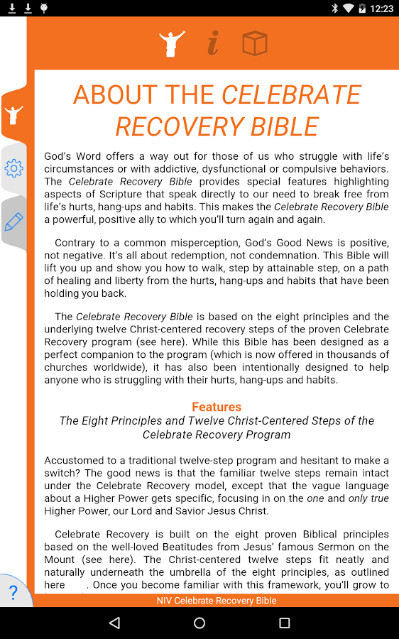 NIV Celebrate Recovery Bible | NIV-New International Version | Bible If you long to break free from life's hurts, hang-ups, and habits, the NIV Celebrate Recovery Bible is a ... Read Here
